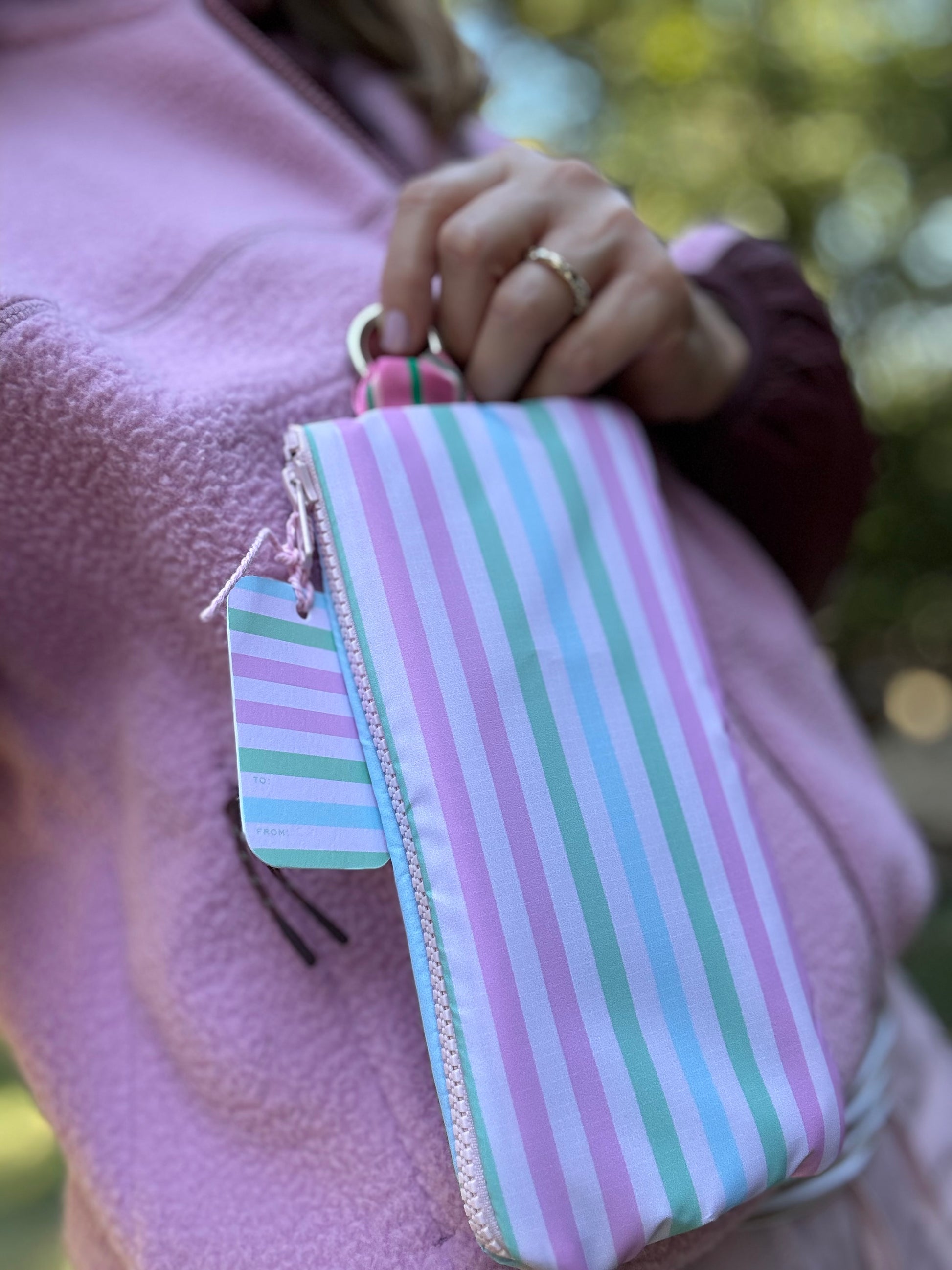 The Brush & Pencil Pouch is perfect for traveling or just running around everyday! Toss it in a tote, handbag, or backpack. The softest waterproof tech fabric. Makes a great gift for the one that loves cosmetics and skin care, or loves a planner and pens! Includes stickers perfect for phone cases, planners, notebooks, laptops, water bottles!