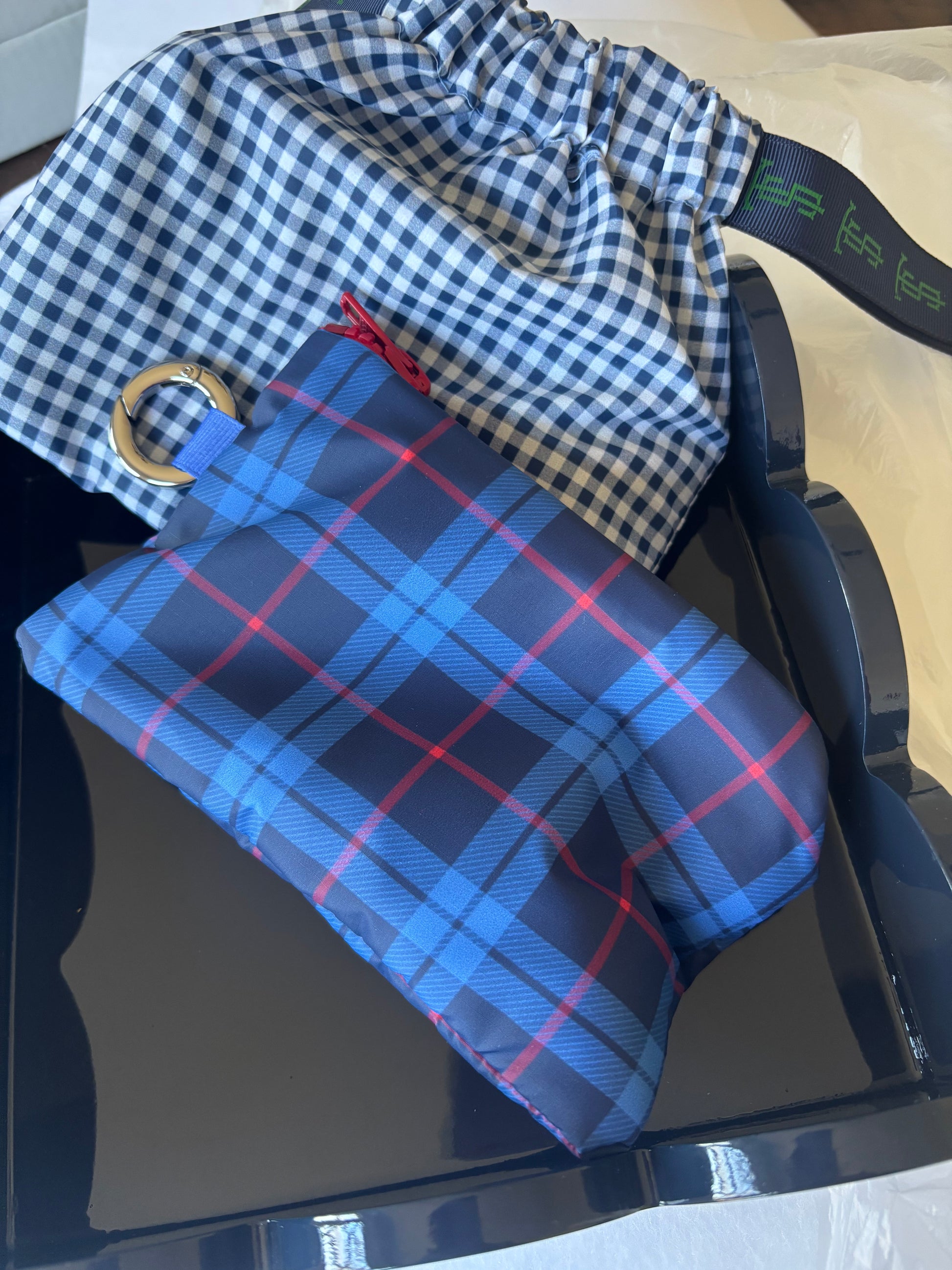 - Navy or multi-colored nylon lining